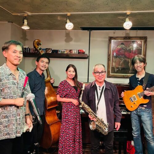 加藤英紀(Sax)/佐瀧浩一(Gt)/前田めぐみ(Pf)/西川サトシ(B)/カズ加藤(Ds)