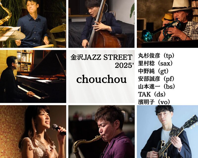 9/13(土) 18:30〜19:10 「まちかどジャズライブ」 金沢市役所庁舎前広場